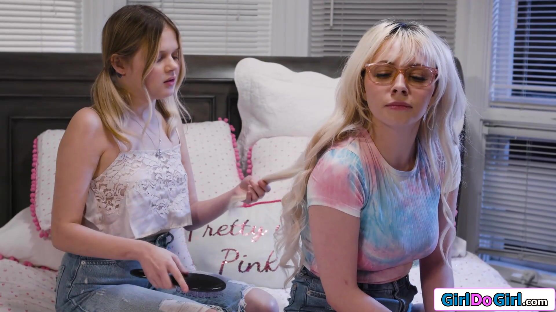 Blonde volunteers to be petite bffs first girl to lick pussy