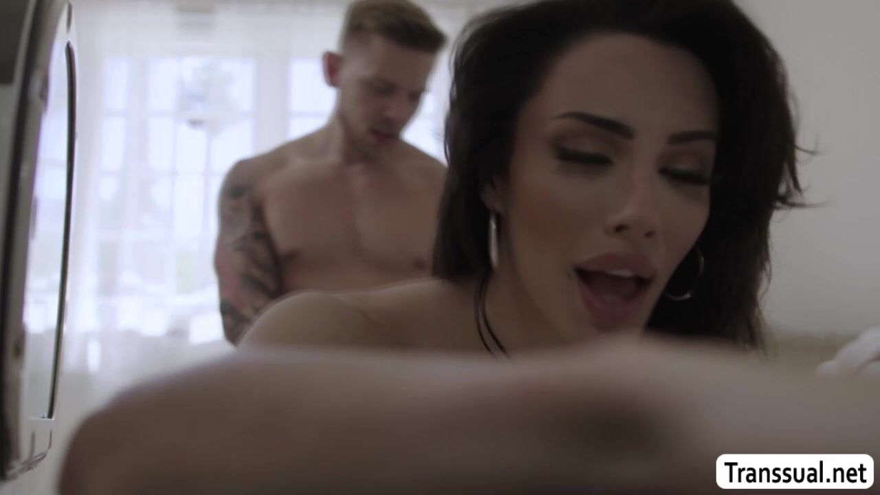 Shirtless Shemale is in the laundry room to wash her clothes.After that,her boss saw her and he rips off her jeans and start fucking her big ass so hard.Instead of getting mad,she throats his dick first and lets him fuck her ass again.