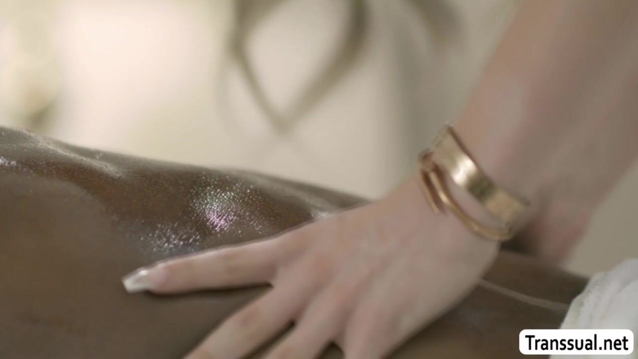 American guy gets butt naked and lets his TS masseuse Jade Venus massage his body.After that,they get horny and start kissing each other.Next is,she lets her throat his big black cock passionately before he fucks her ass so hard.