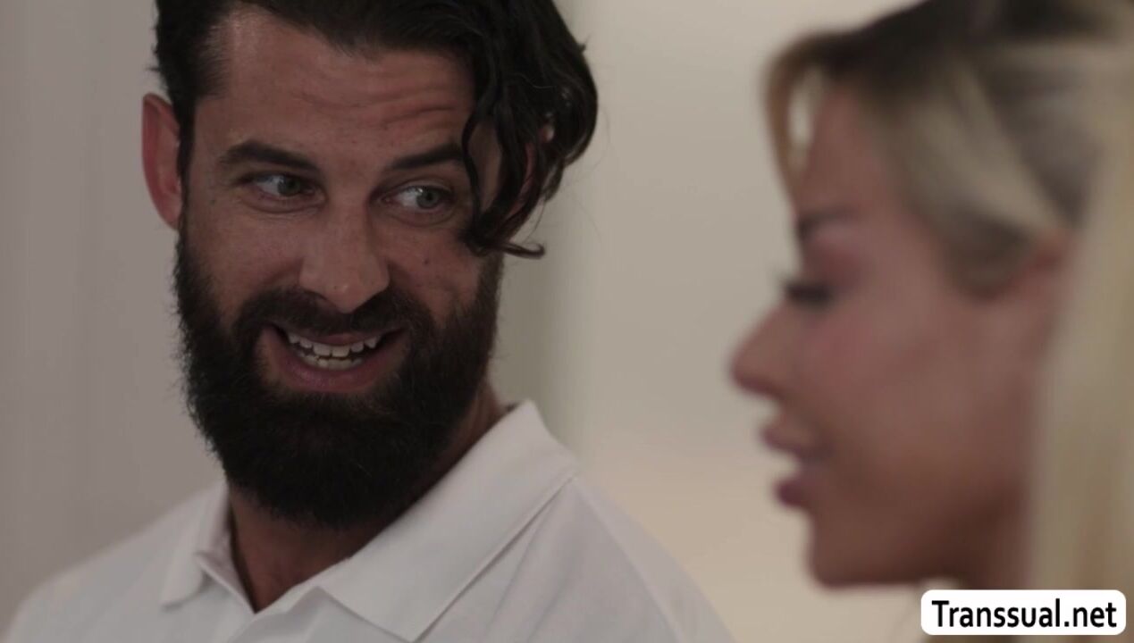 Beautiful blonde TS seduces her stepbrother by doing sexy dance in front of him.After that,they start kissing each other and she then throats his hard big cock passionately.In return,her stepbrother fucks her tight ass so deep and hard.