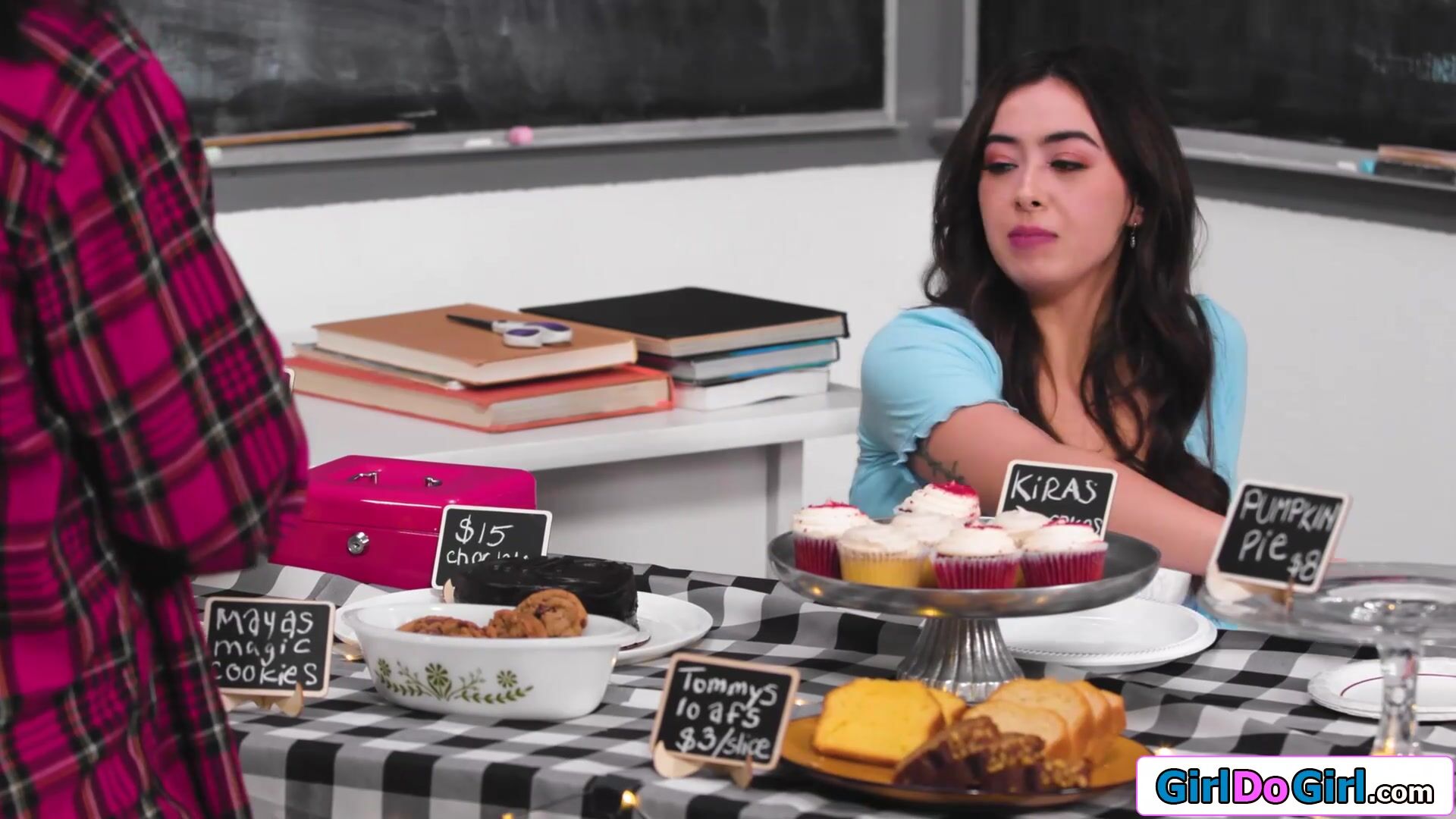 Busty stepmom thinks some new energy will improve her stepdaughters bake sales.The big tits milf licks the big boobs teens pussy while she sells out.The old and young lesbian couple is still horny so they kiss and the petite blonde cougar gets oral