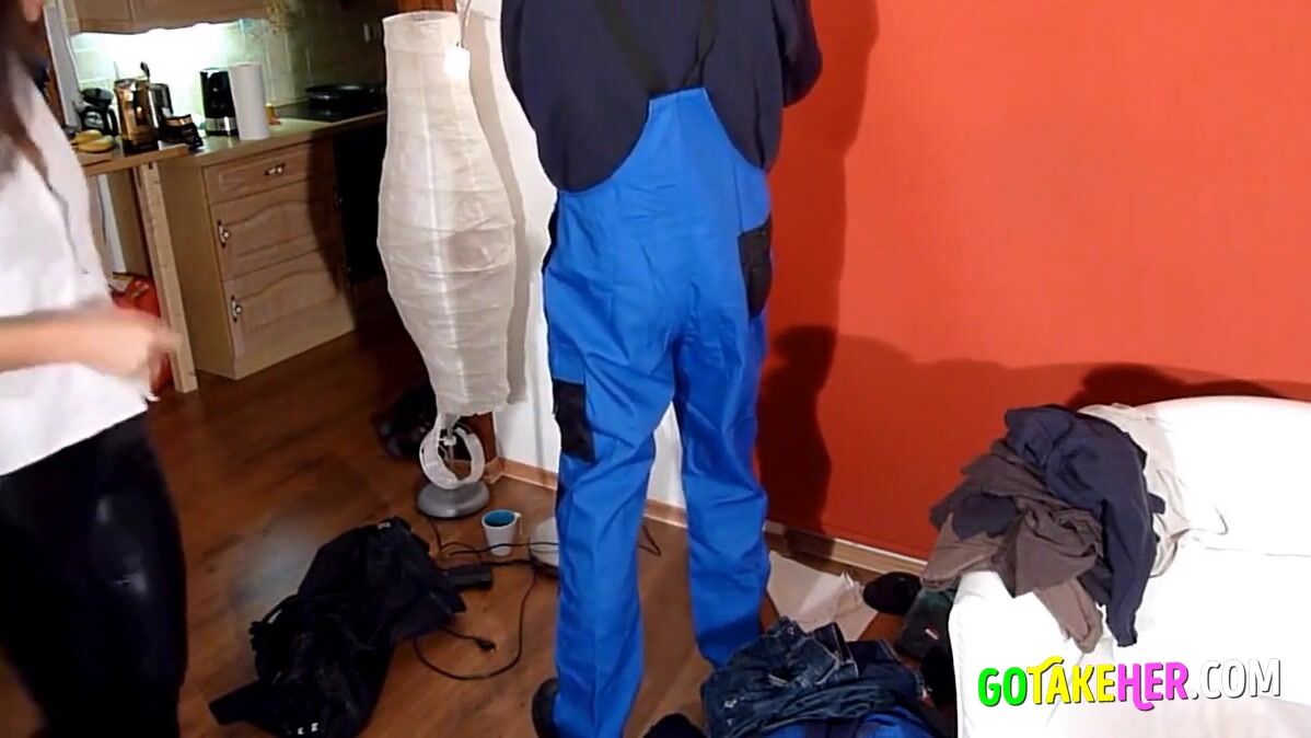 Kaum ist ihr Mann aus dem Haus klingelt der Handwerker. Der will allerdings nichts reparieren, sondern die geile Hausfrau in den Arsch ficken.