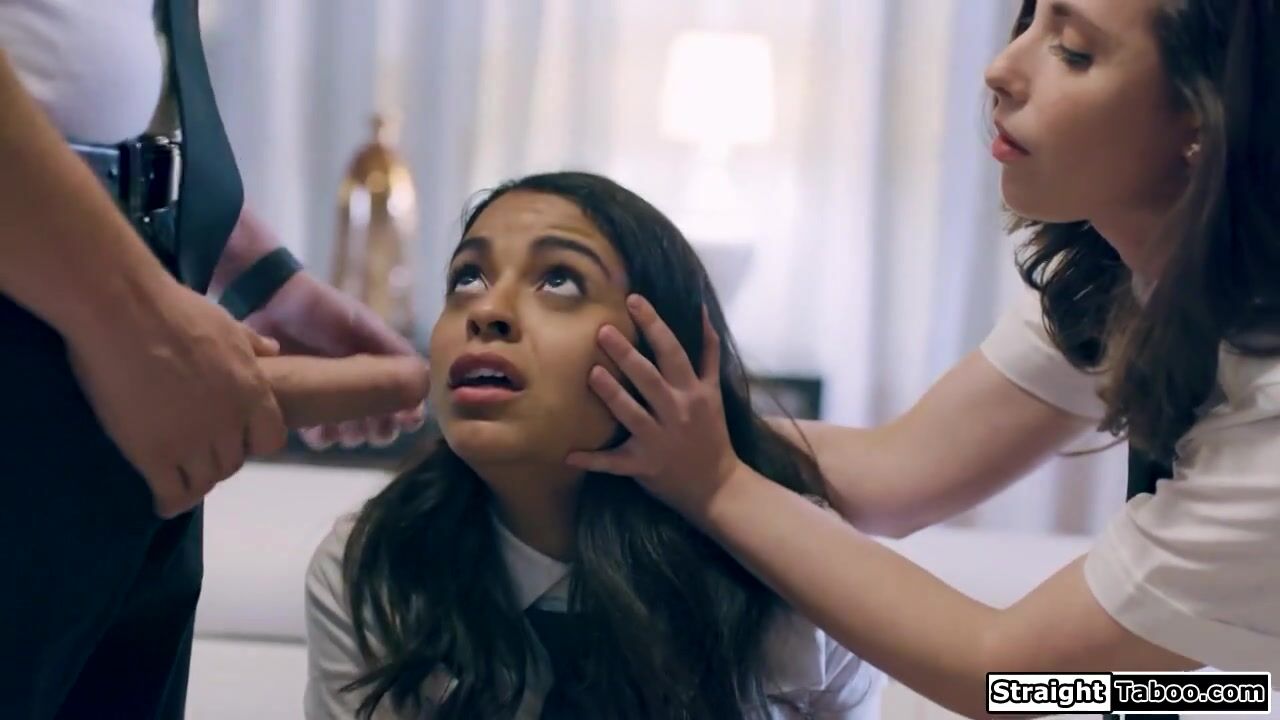Stepsister and stepbrother make a virgin classmate join em in 3some.The busty latina student deepthroats his big cock while facefucked.The big tits brunette licks the petite babe shaved pussy and is fucked as the small tits girl masturbates her cunt