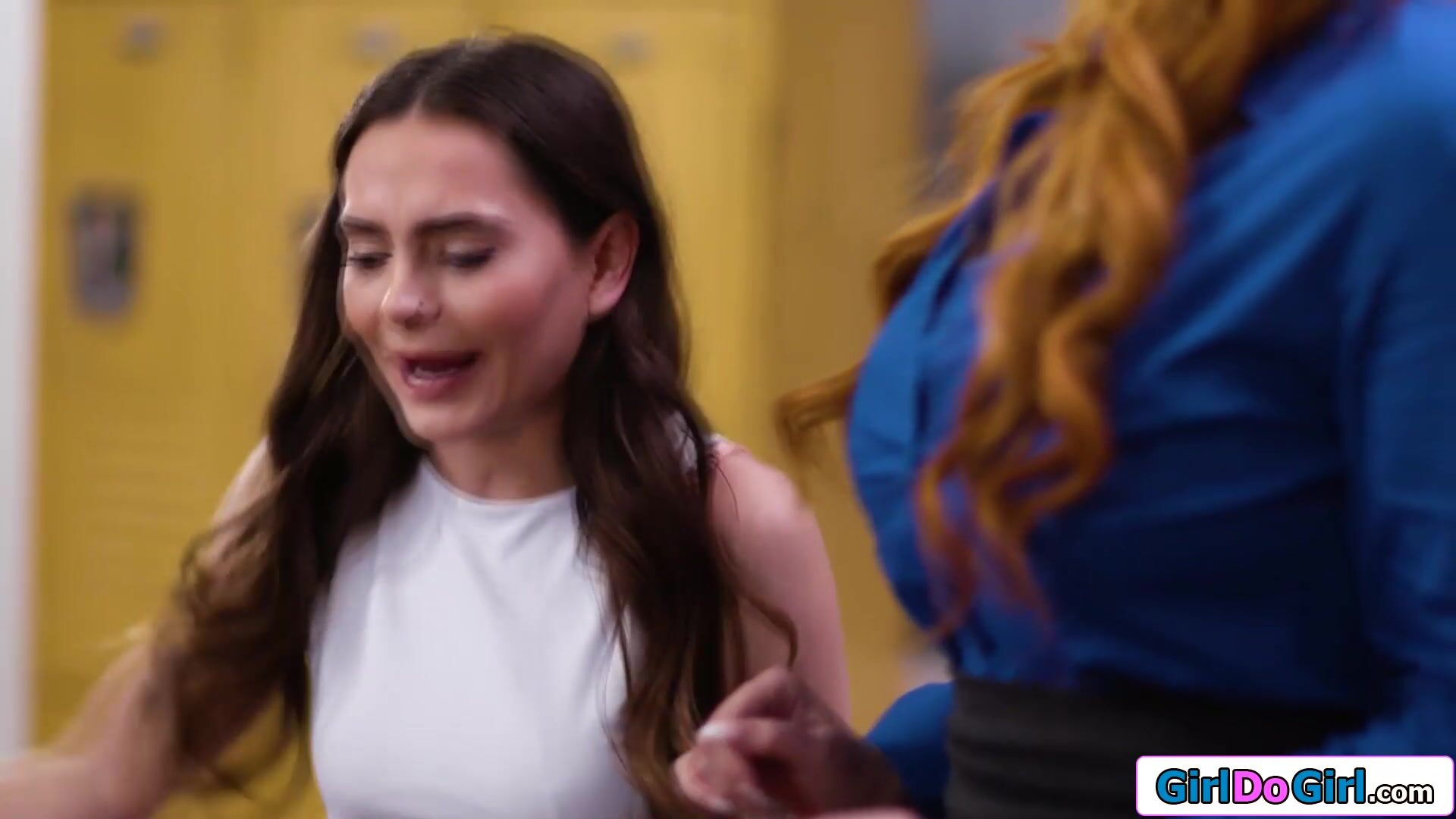 Busty redhead teacher cant resist two horny coeds when they undress her.The petite college babes sucks her big tits and masturbate her.The ginger milf is facesitted while getting oral.She watches the brunette getting pussy licked while she facesits