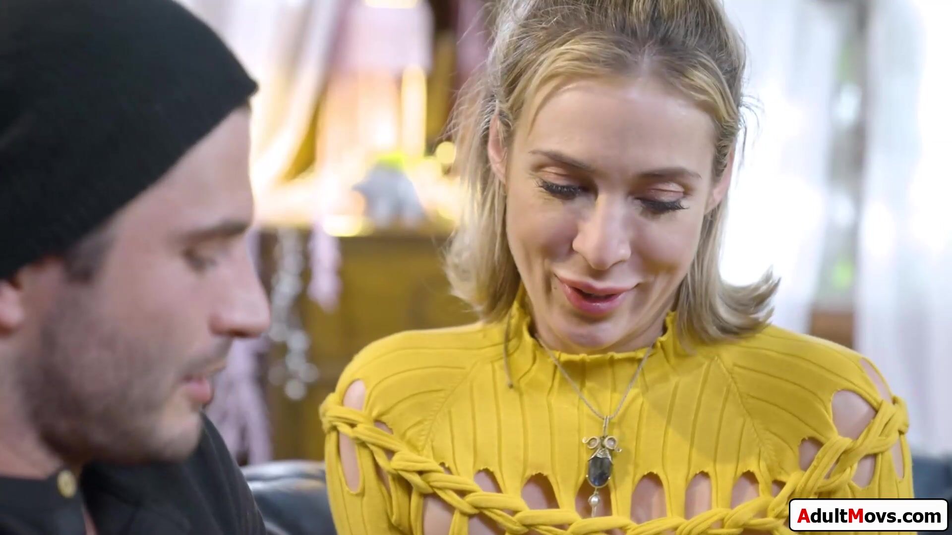 Blonde invited a hot guy over.Both are very nervous on their first date but also very horny.The couple makes out and the babe deepthroats his big cock.She rides on his dick until she bursts out her squirting orgasm and lets him lick out her pussy