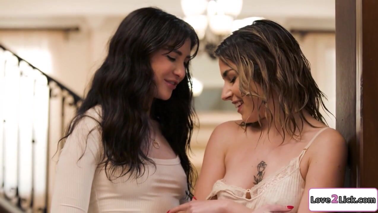 Hotel owner offers company to a petite teen that got dumped by her gf.They kiss and the 19yo blonde gives her oral sex and masturbates her hairy pussy as they make out.The brunette sucks her small tits and licks the tattooed girl cunt.Then they trib