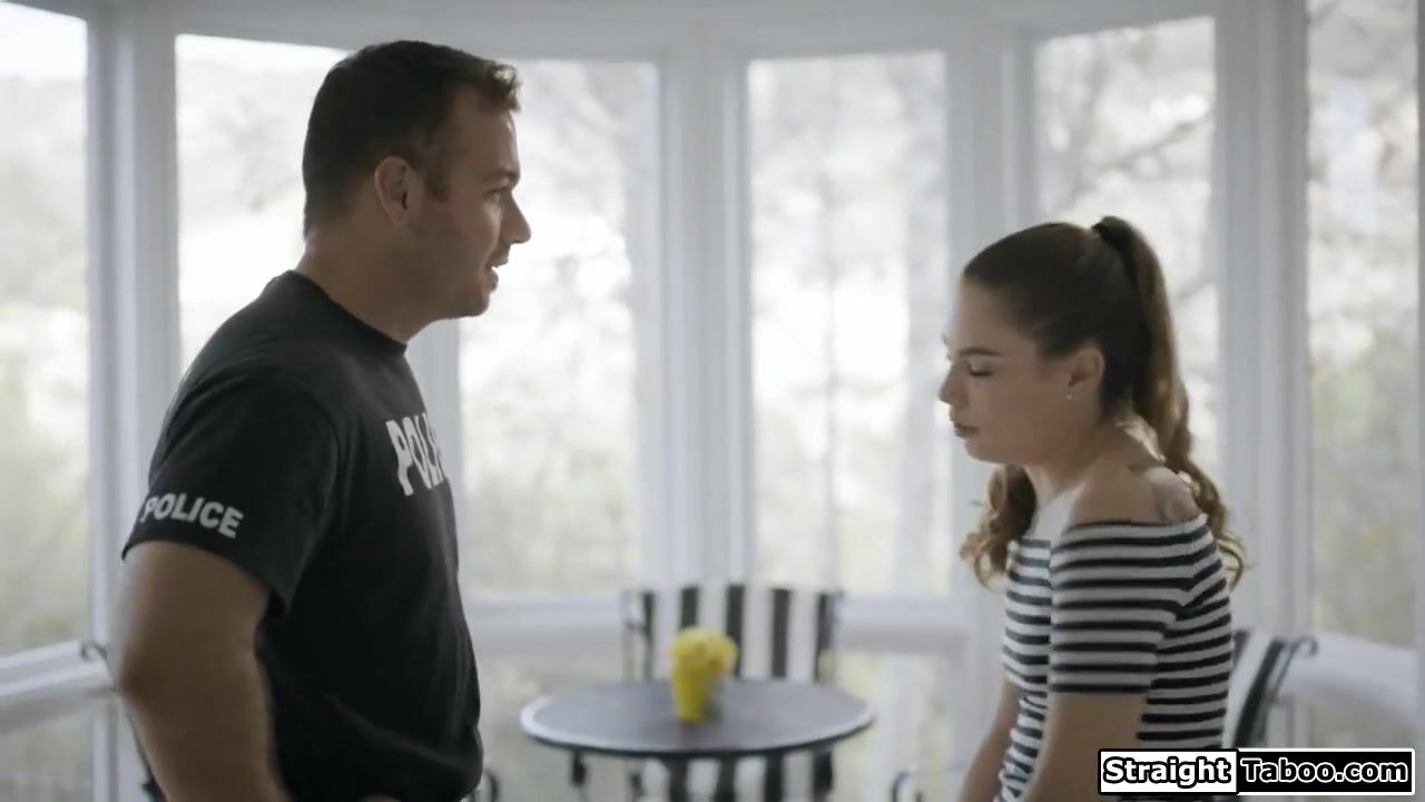 Officer makes petite sisterinlaw suck his big cock in exchange of keeping her secrets.The uniformed guy deepthroat facefucks her and the small tits babe gets banged rough as he chokes her.Then the cop fucks the cheating brunette as she rides his dick