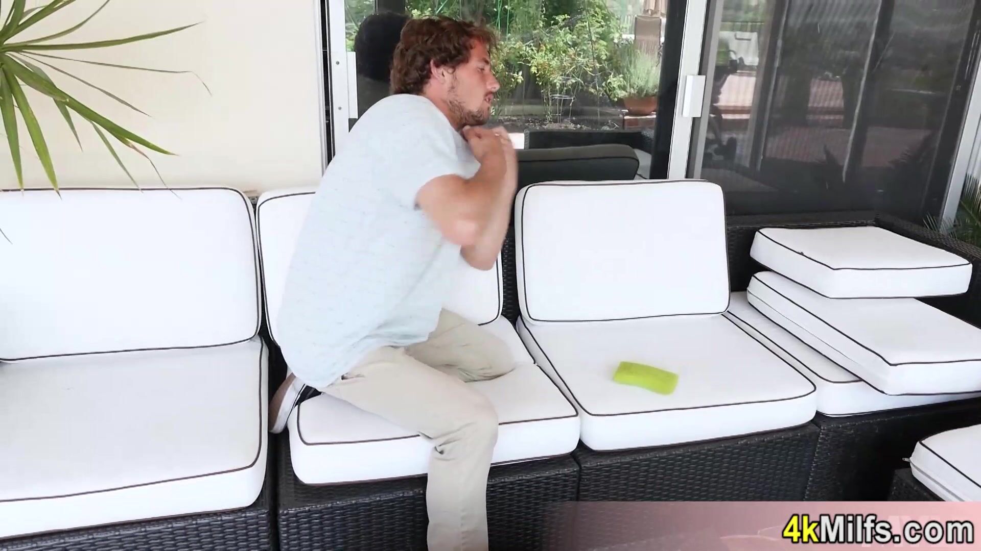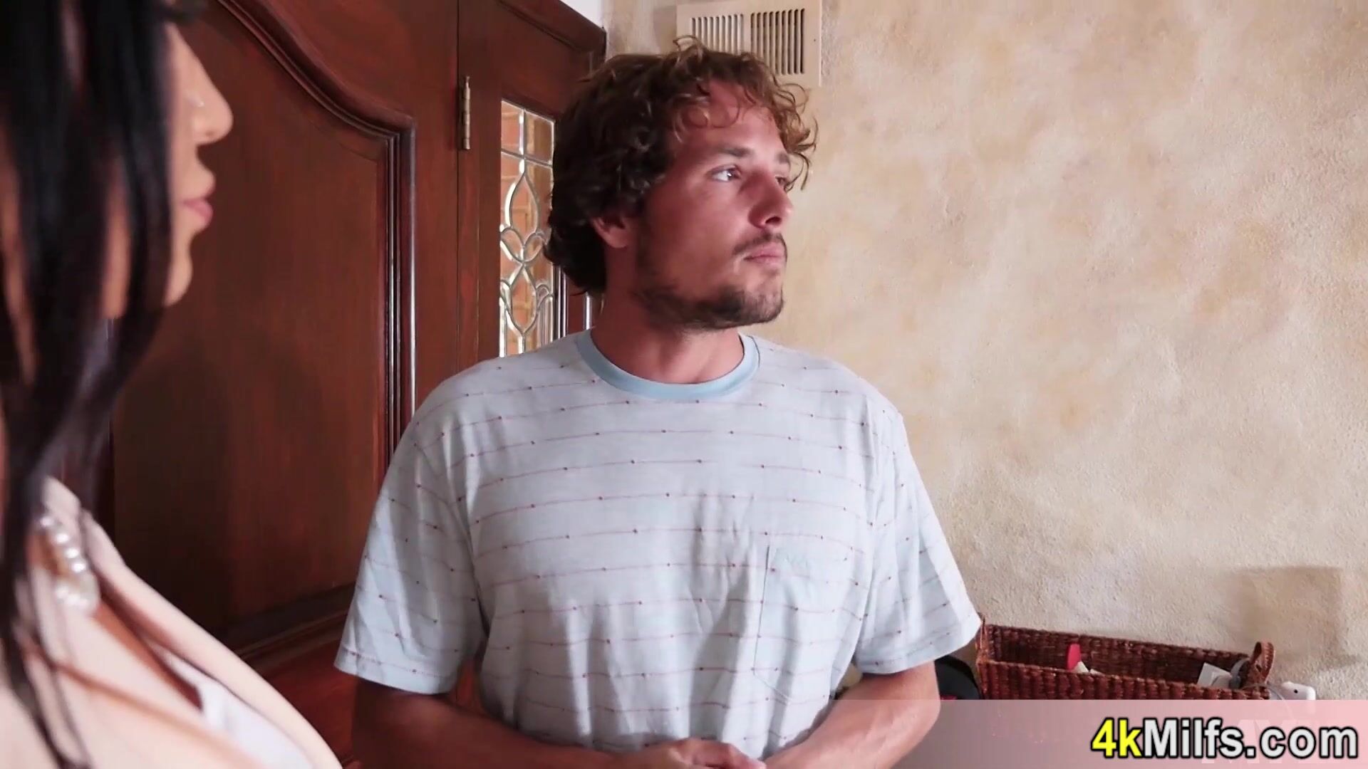 Hot brunette mature housewife Melissa Lynn flashes her big fake boobs to the cleaning gux and the neglected slut asks him to fuck her neglected MILF pussy hard but first she wants to taste his big cock so she gives him a blowjob