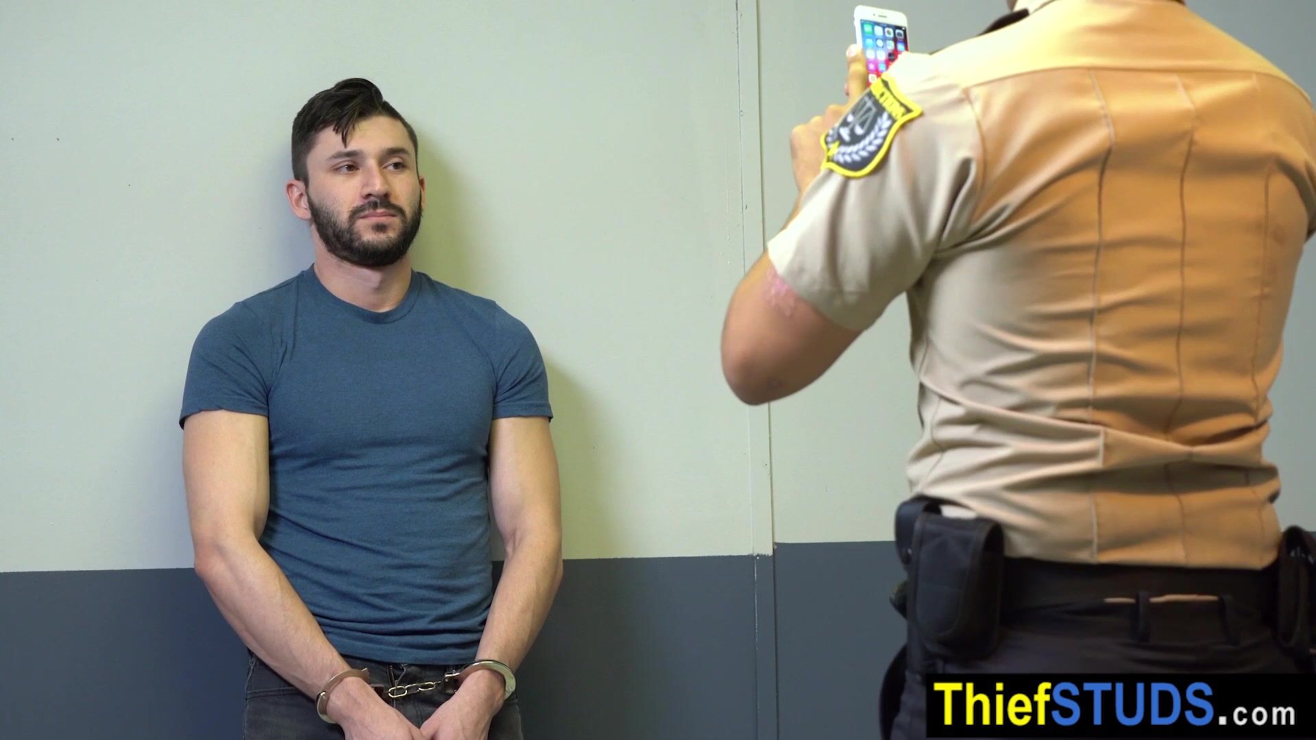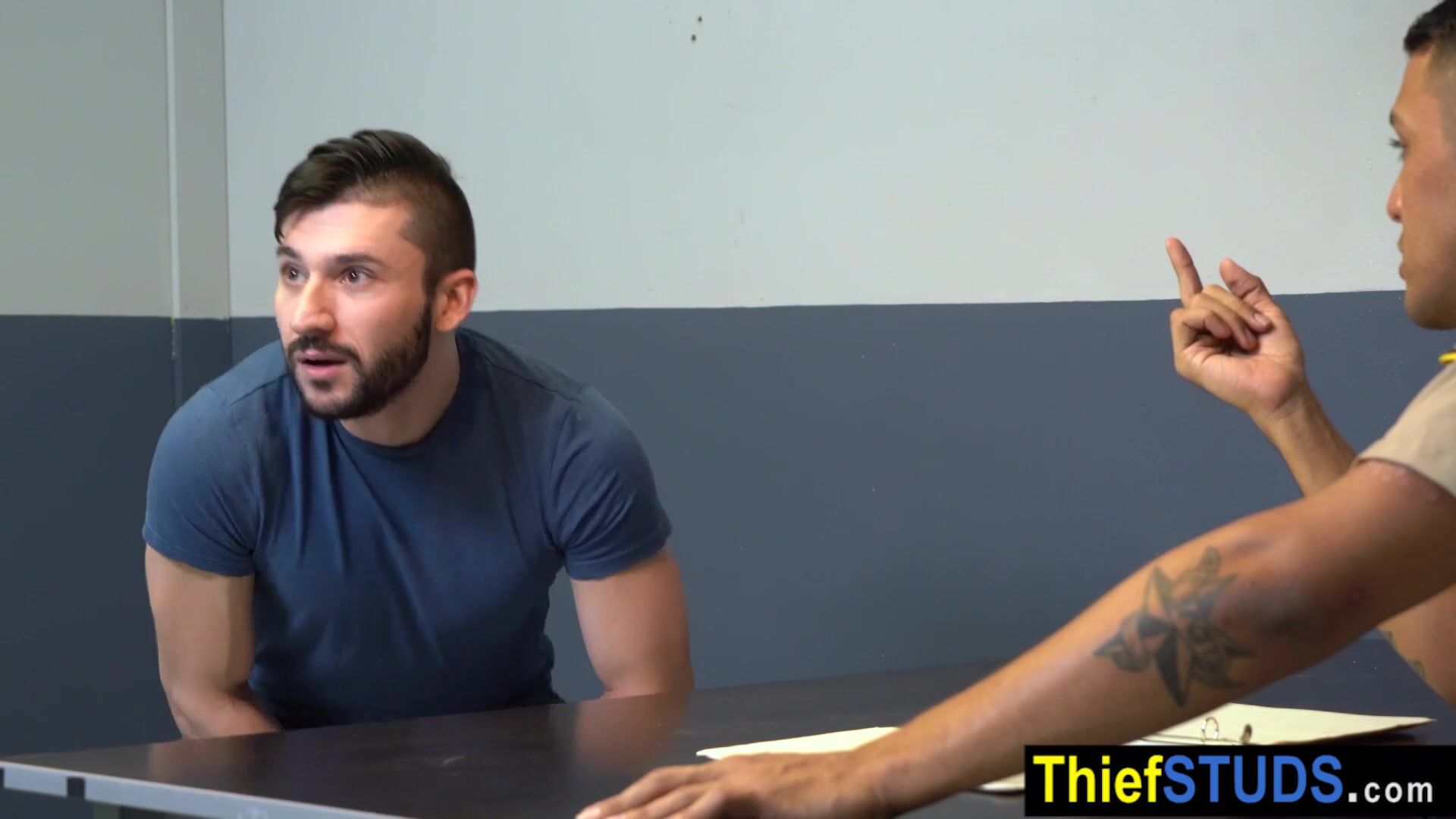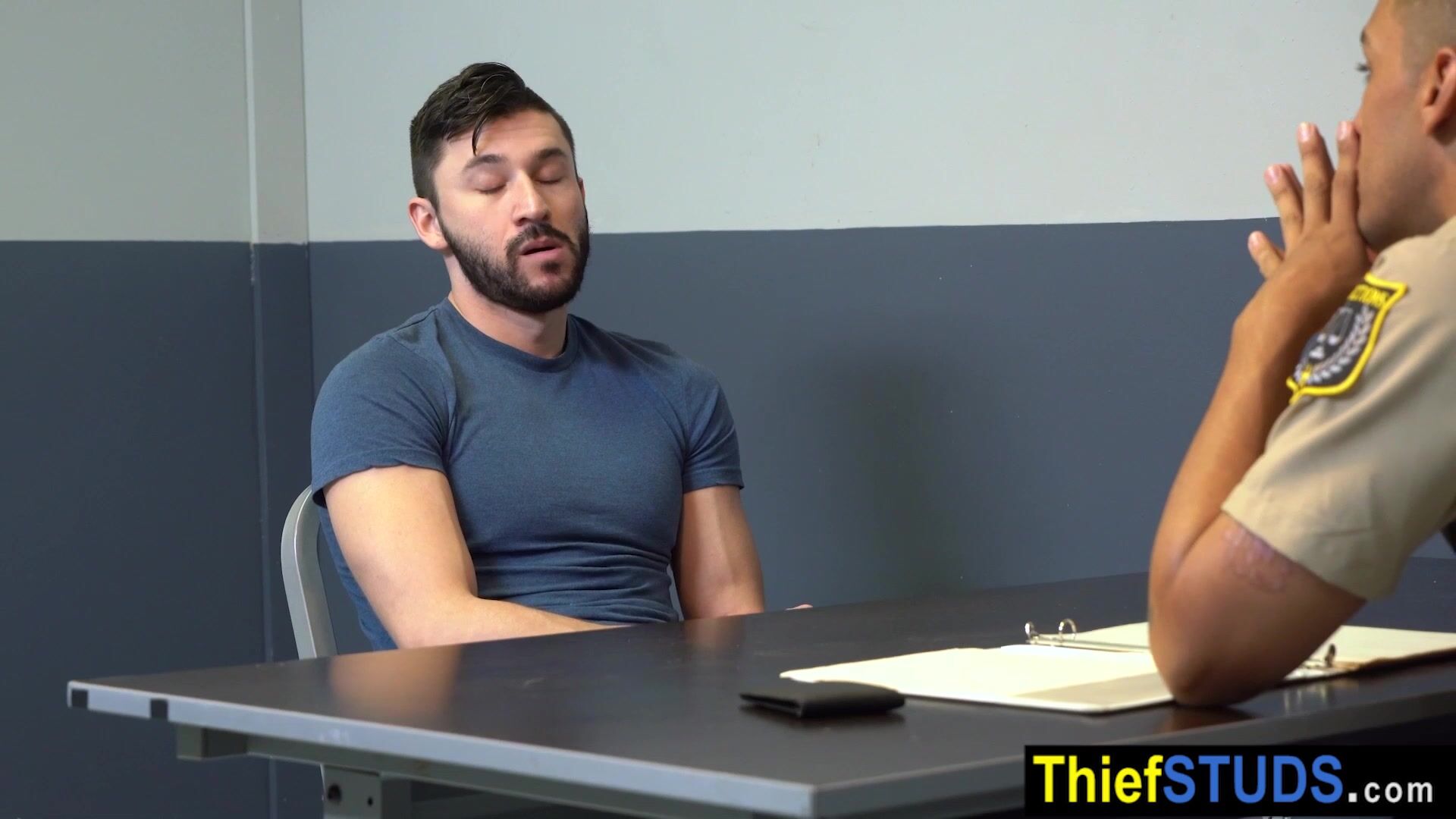 Gay latin guard Leo Silva arresting a suspect Scott Demarco and bringing him back to headquarters He attempts to bribe the Officer with money but he wants something else The teen has to suck his big tanned cock then he is anal fucking him bareback