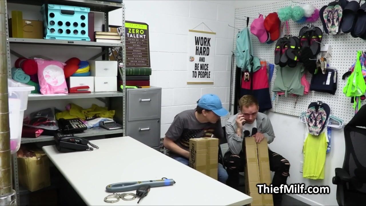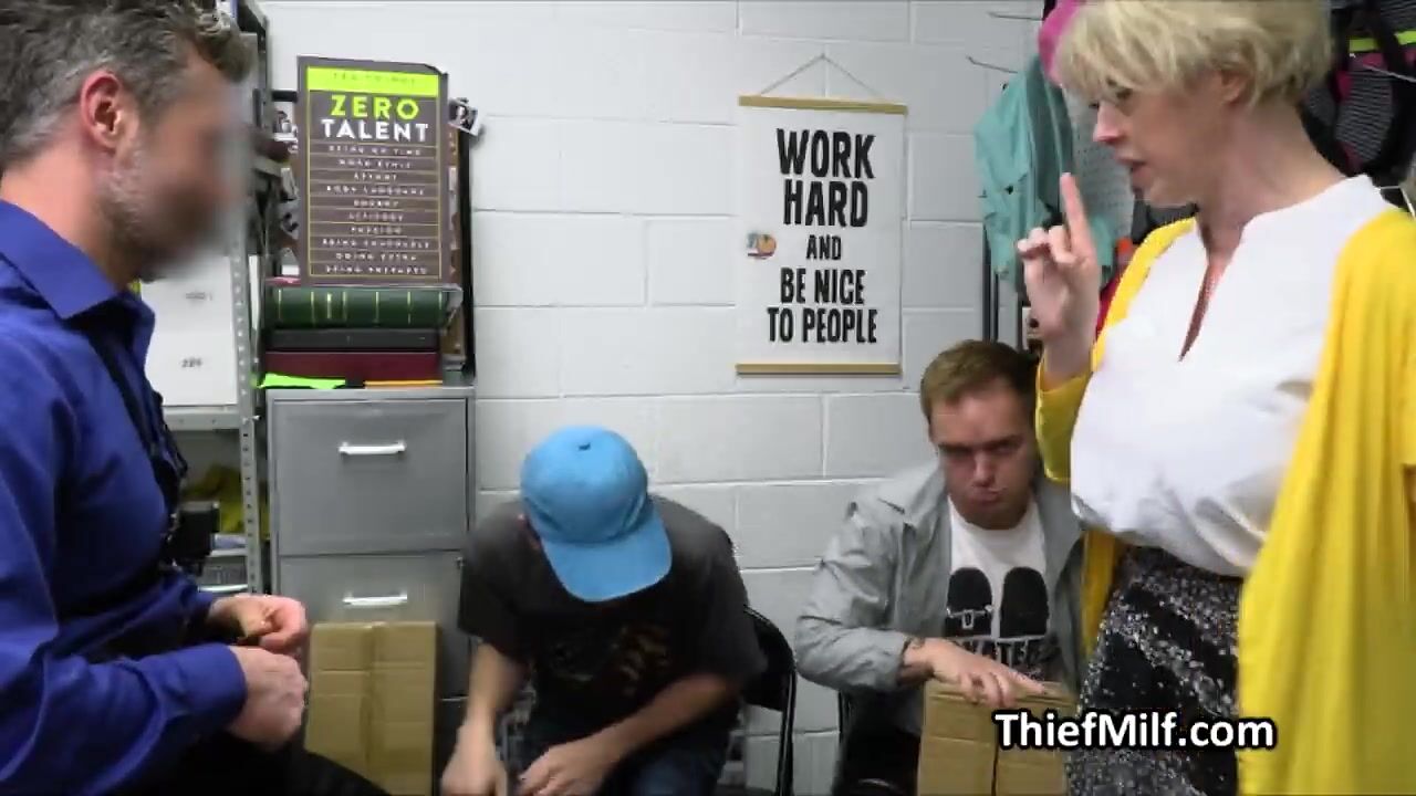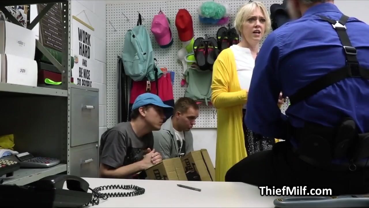These dudes are in serious and deep trouble, but luckily for them someone is here to save their asses from jail. Its the hot big tit MILF Dee and her pussy!
