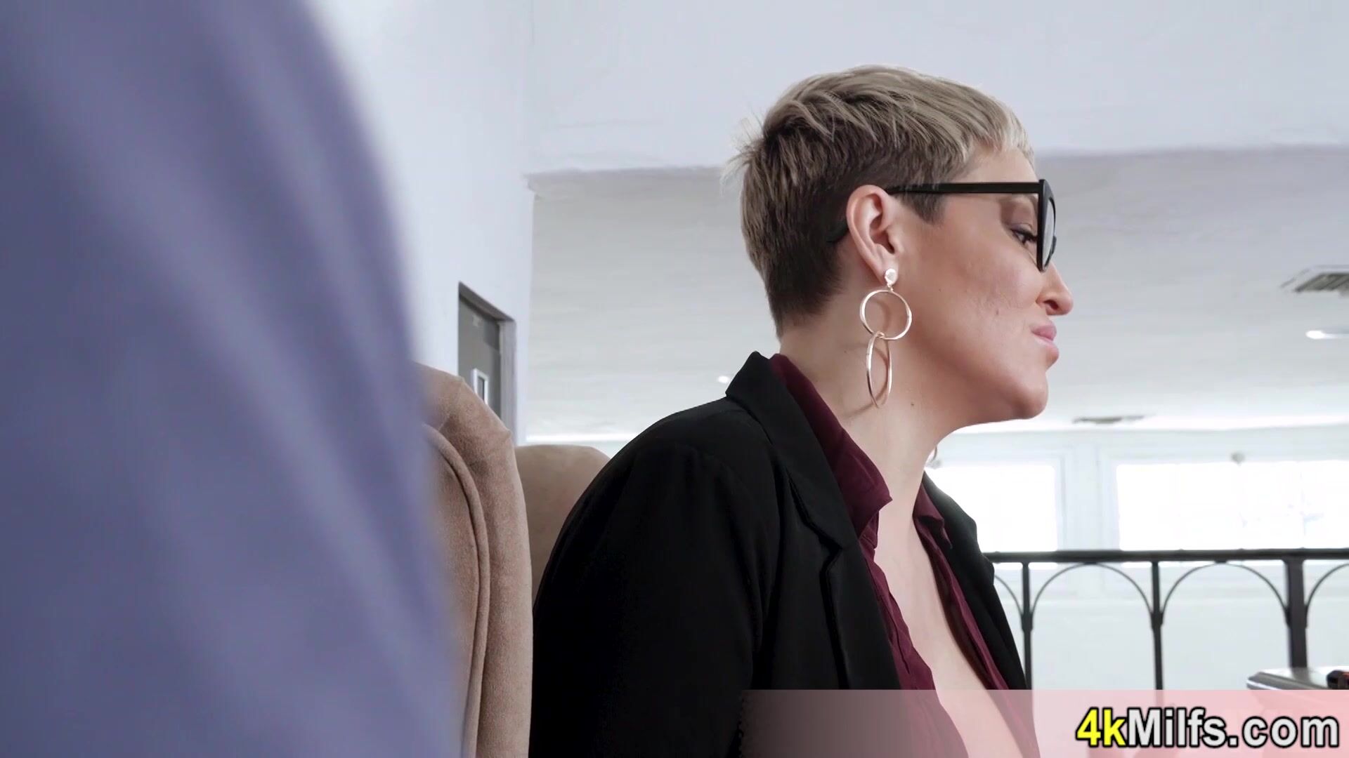 Blonde MILF lawyer Ryan Keely with big boobs is in the middle of a heated divorce case and she needs some attention so she orders her big cocked employee to satisfy her negleceted pussy after she gave him a deepthroat blowjob
