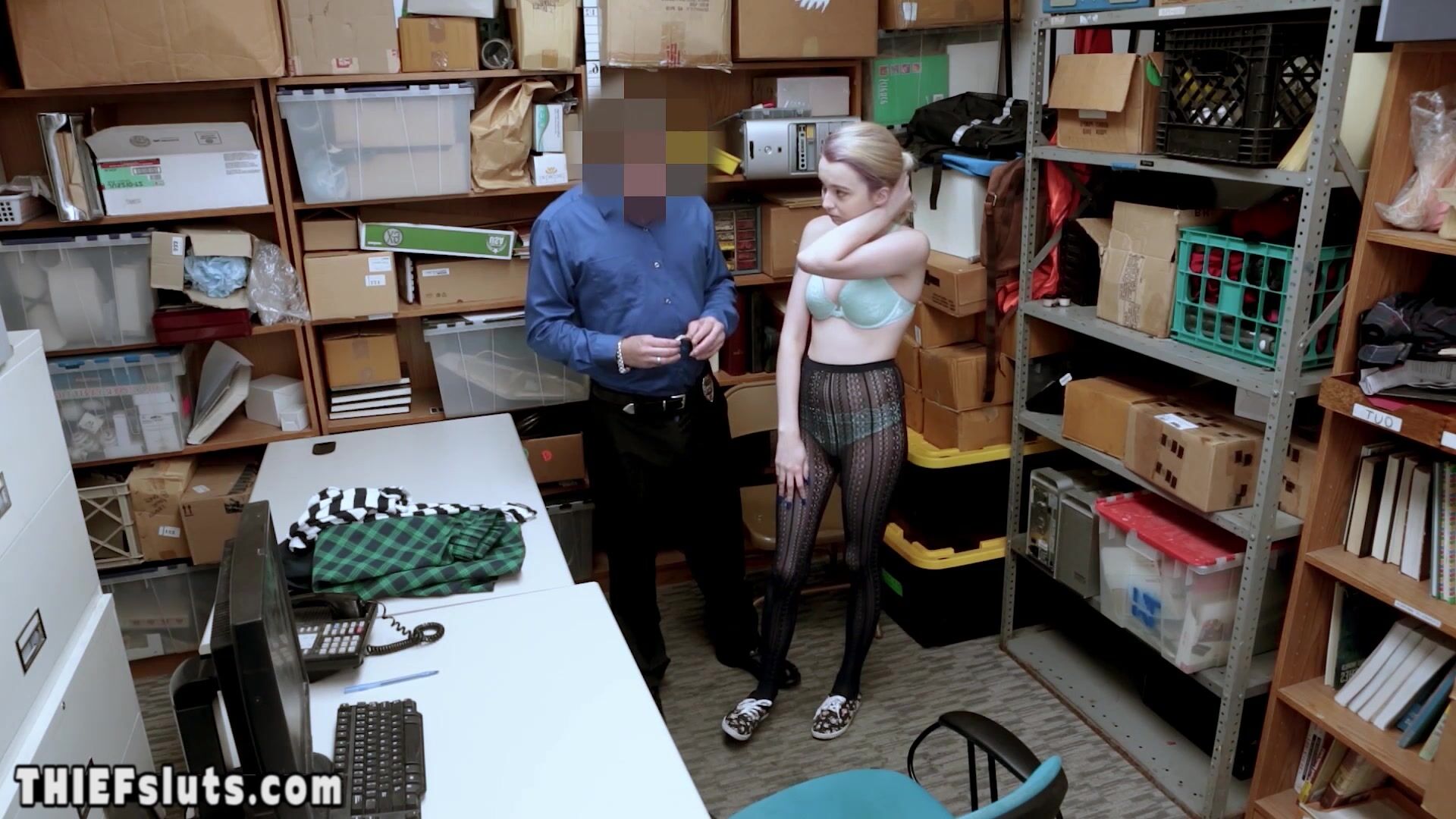 Cooperative teen thief Lexi Lore fucking a guards big dick