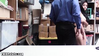 Scared arab teen thief Ella Knox with big natural tits gets caught by a horny LP officer and she has to pay for her sins on his big white cock He orders her to suck his dick then he is fucking her hard