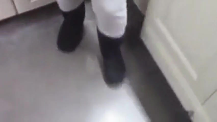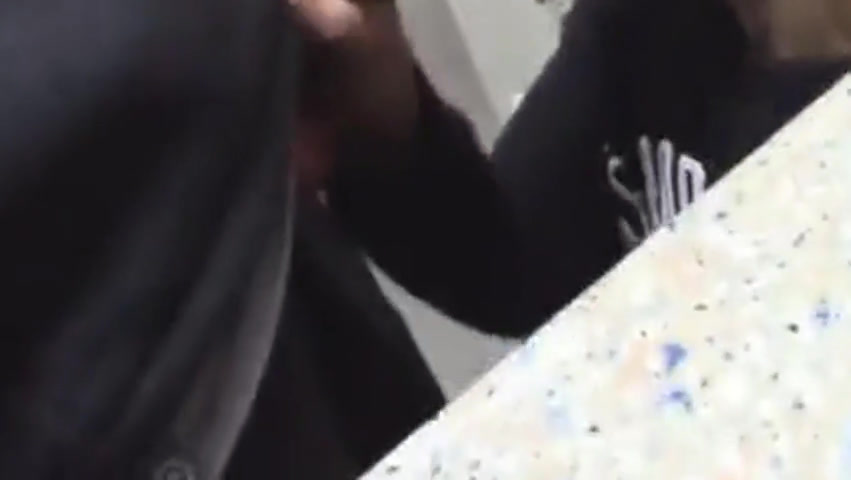 This young slut gets on her knees sucks her lovers cock in the middle of a hardware store before taking his cum in her mouth and on her chin.