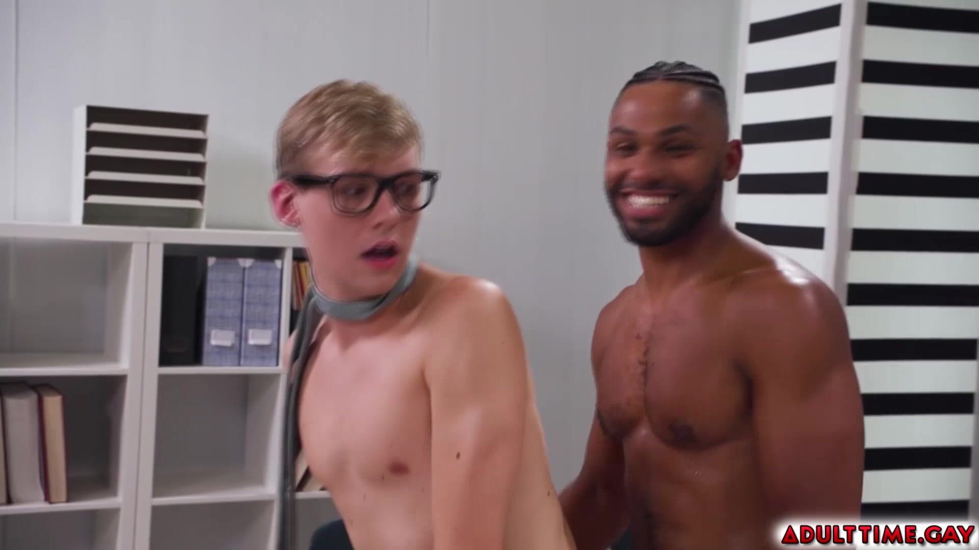 Nerdy gay Jack Bailey gets gang banged by hot muscular guys for the football team in exchange for his tutoring. He is super energized with all the dicks surrounding him fucking his mouth and asshole hard.