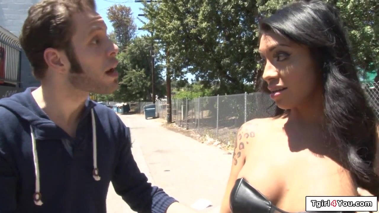 Guy teaches busty trans Natalie Foxx to be a sex worker and the big tits tgirl deepthroats his big cock.The tattooed ts bends over and he rims her and sucks her small tranny dick and balls.Then the brunette shemale gets anal fucked as she jacks off