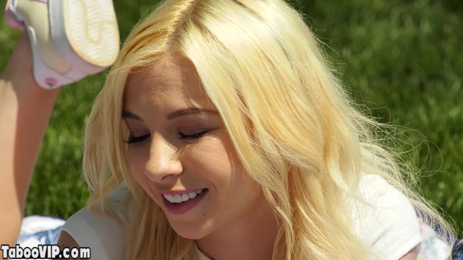 Petite blonde teen stepsister with small tits is in love with her stepbro She takes his big cock at the backyard outdoor and after a sloppy deepthroat blowjob he is fucking her fresh pussy roughly