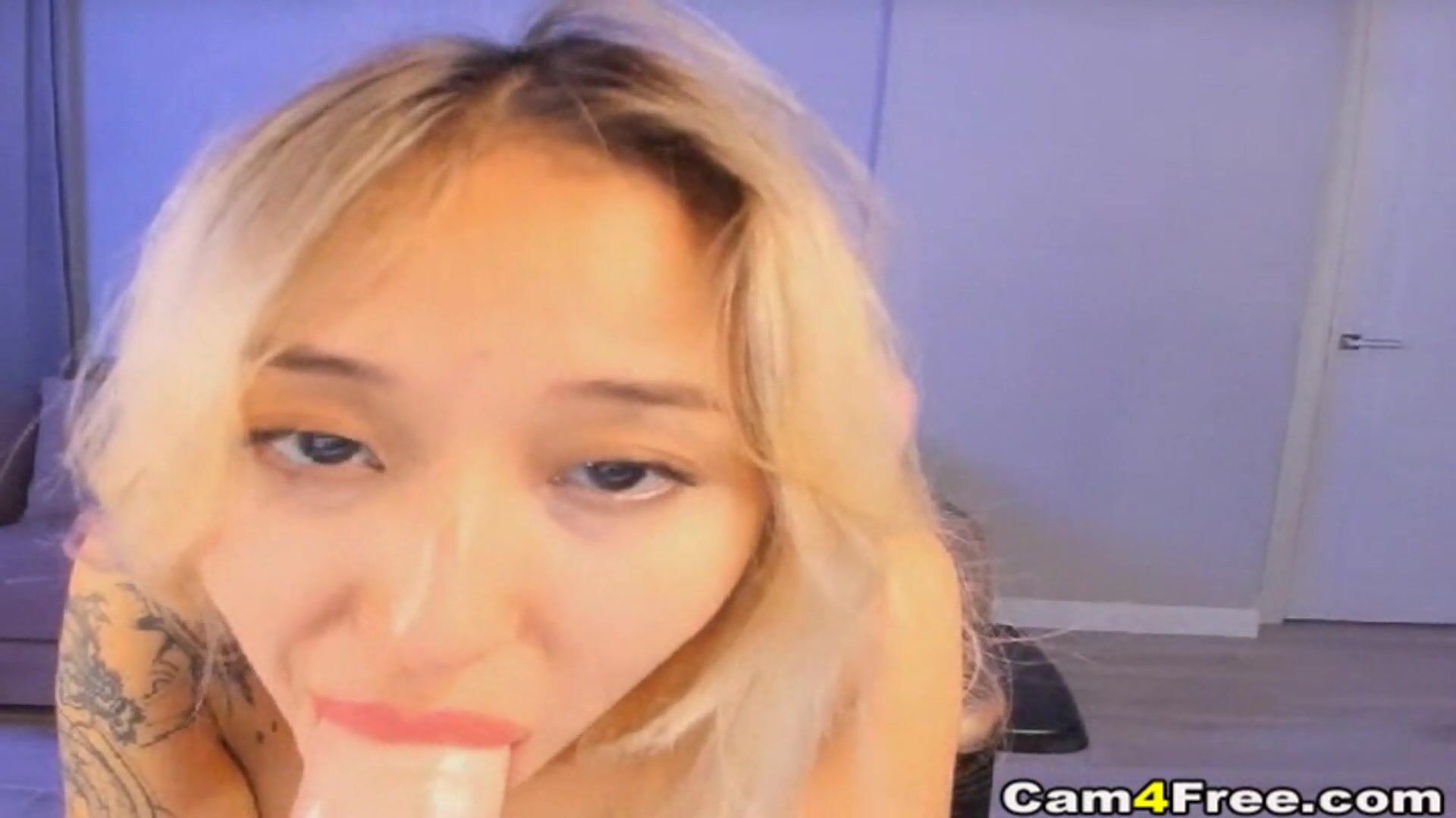 Sexy Solo Blonde Extremely Sucking Her Dildo