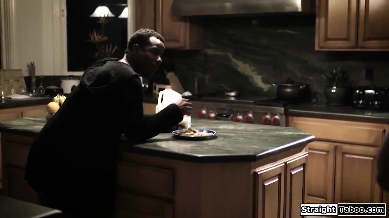 Fatherinlaw makes a petite babe suck his big black cock to prove she loves his stepson.The older guy deepthroat facefucks the cheating girlfriend and gives her oral sex.Then the small tits brunette girl gets banged rough from behind in the kitchen