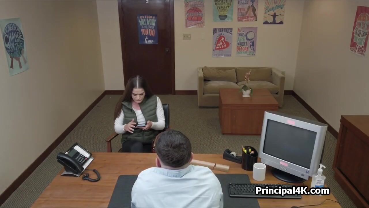A lovely housewife has arrived at Mr. Peters office. He is the head teacher and loves to watch ladies giving head on him as well!