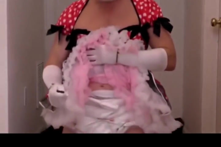 Diapered sissy princess in pretty red dress gets triple diapers to insure no leaks