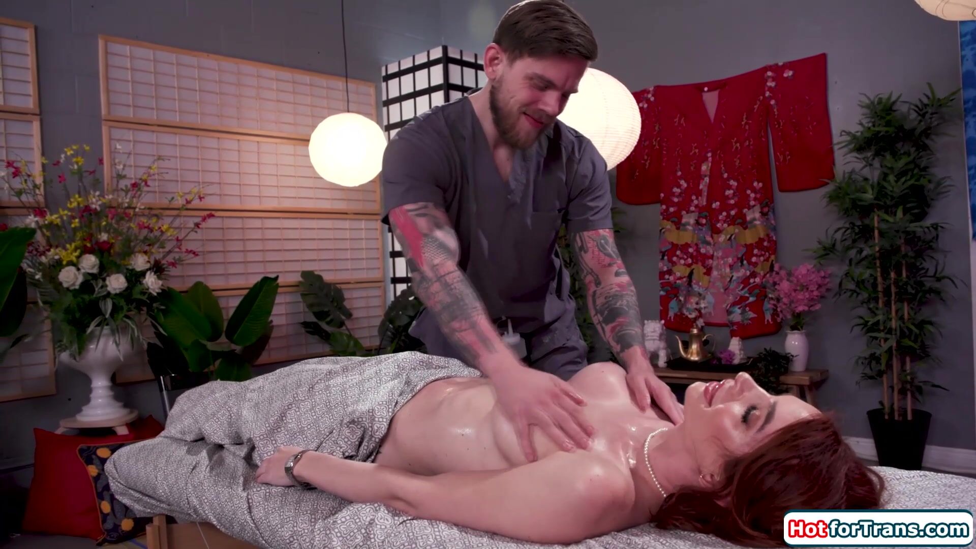 My shemale dick gets hard when my hot masseuse gives me an ass massage.I turn over so he can massage my big tits and suddenly he grabs my tgirl cock while putting his boner in my mouth.I let him do all he wants to me and I get rimmed and I anal ride