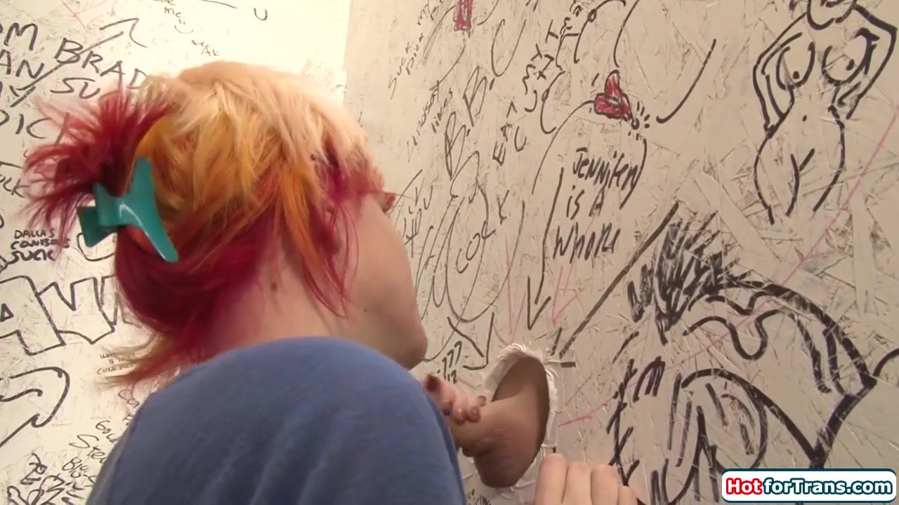 Surprise you just sucked my tgirl dick through the gloryhole.Oh come on I see you staring in lust at my big trans tits and want to have your first shemale fuck.So masturbate your pussy while I facefuck you with my tranny boner before I bang you