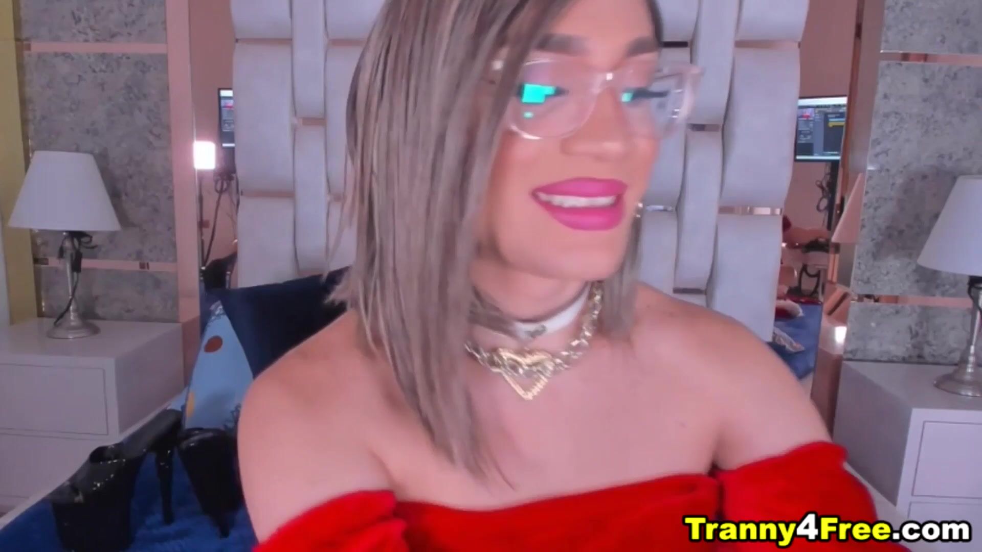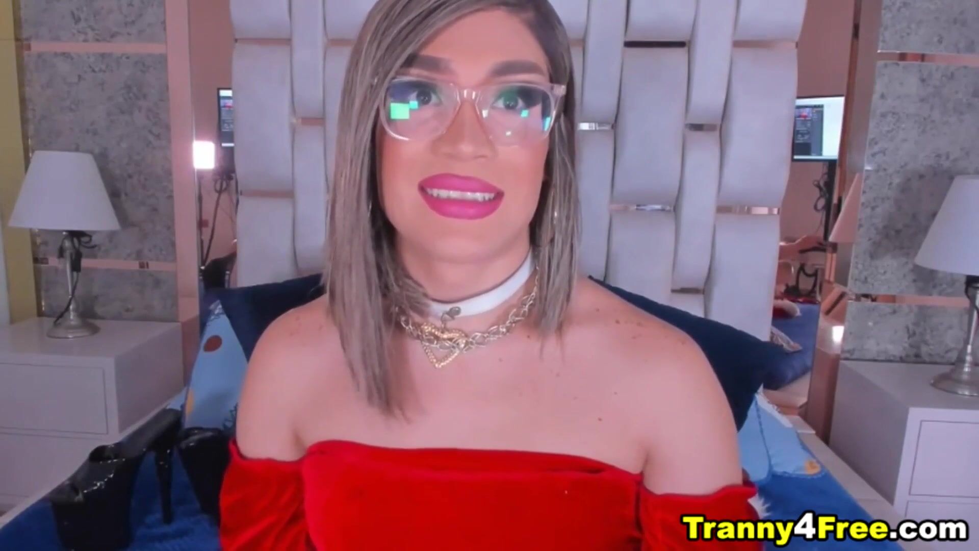This adorable Shemale twerks her big dick