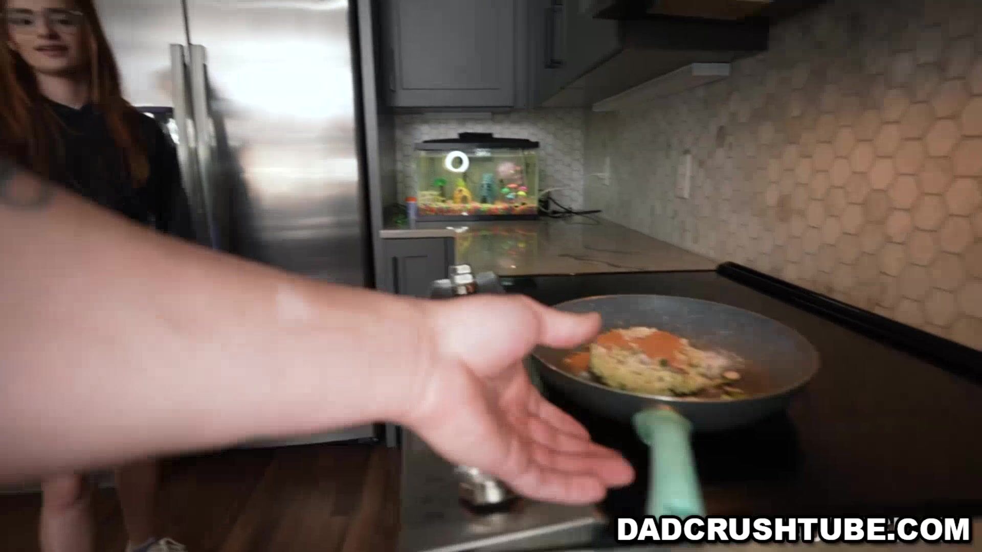 Girl with glasses Reese Robbins is still having trouble keeping her ex out of her mind and Ike makes her go on her knees and slobber his huge manhood in the kitchen. Reese is having a hard time taking the full length.