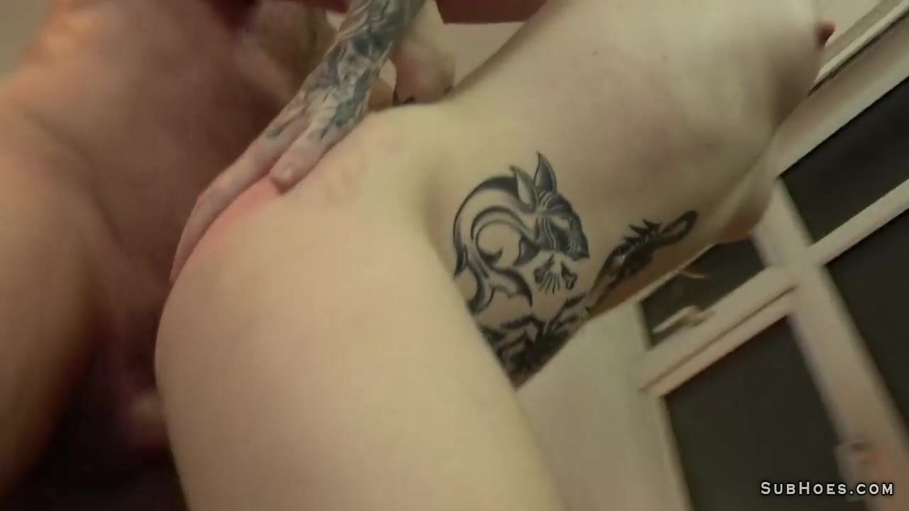 Horny tattooed and pretty redhead slut Azura Alii enjoys in amazing throat fucking and anal pounding and she gets spanking and slapping with hands on throat