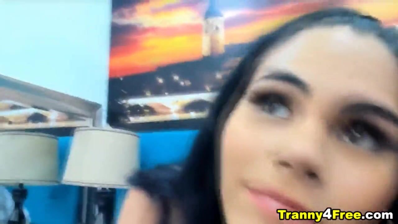Beautifully bare-chested Shemale Faps Her Huge Cock