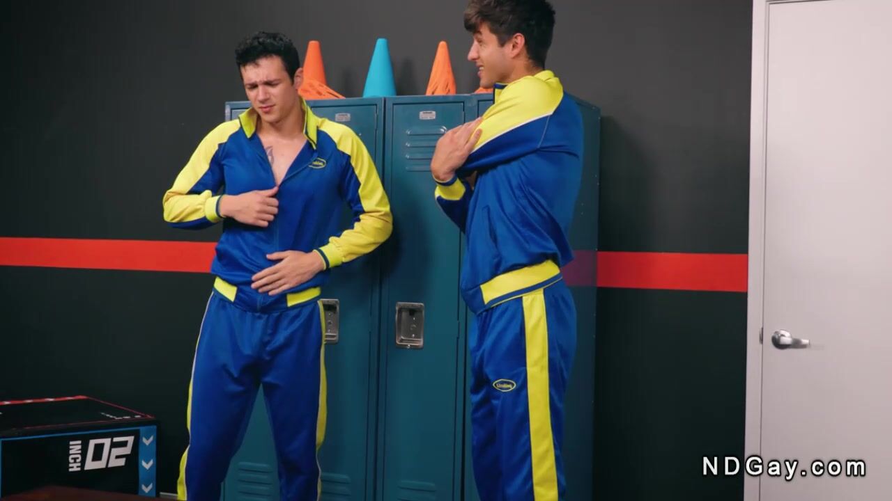 Gay teammates fuck with coach in locker room