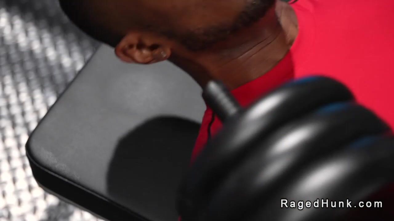 Big black cock Sean Xavier gets mouth fucked by big dick Zod Blakk while working out in the gym then anal fucks him and gets anal banged in dim empty place