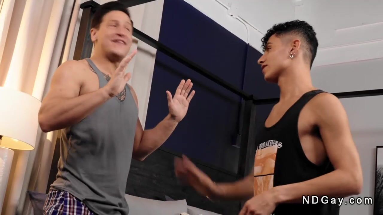 Muscle stepbrother Dalton Riley is annoyed by his soft twink stepbro Ian Daniels and lays him in bed and sucks his cock then anal fucks him with huge cock in bedroom