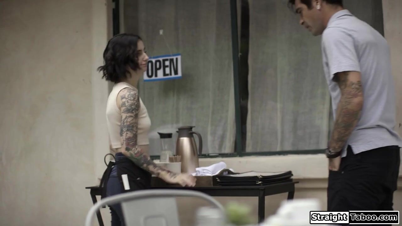 Client asks a tattooed barista out to make up for the attitude of his twinbrother.They kiss and he sucks her small tits.He gives oral sex as he fingers her shaved pussy and the brunette babe gets deepthroat facefucked.The petite girl gets anal fucked