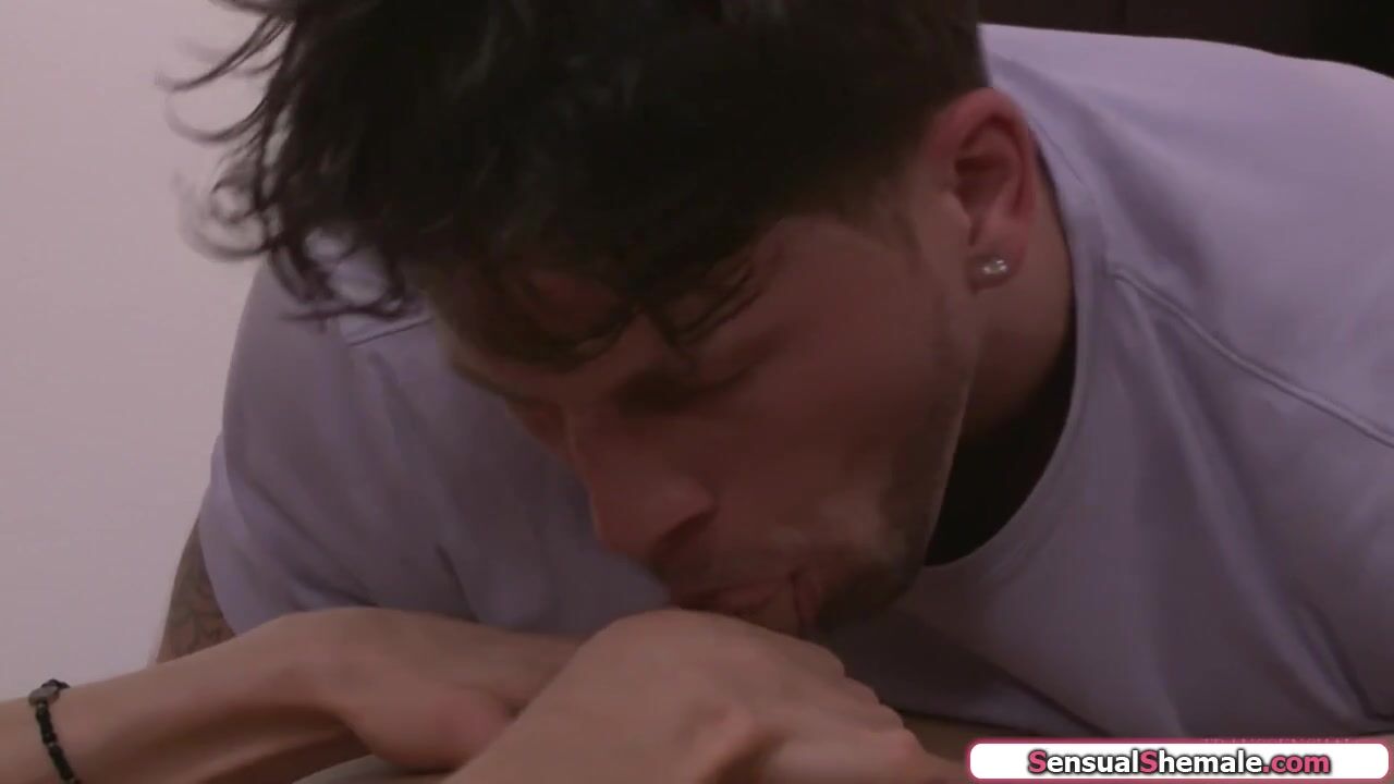 Masseur gives a massage to latina trans Sunday Valentina and strokes her big tranny cock.The guy gives her a blowjob and the big tits tgirl gets deepthroat facefucked.The busty shemale is anal reamed from behind and the redhead ts gets anal fucked