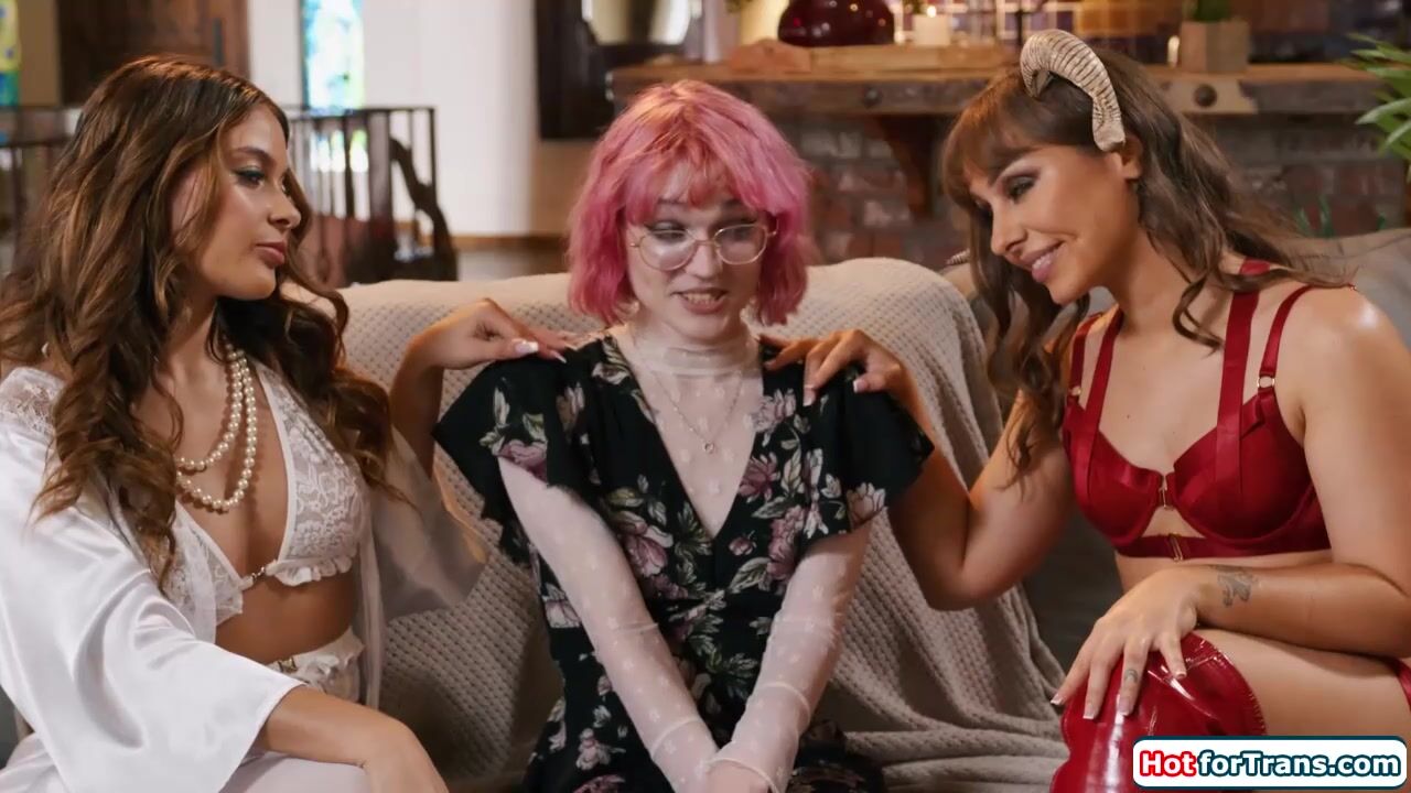 Angel Nicole Aria and devil Tommy King have a sex duel to win over ts Claire Tenebrarum.The small tits shemale is deepthroated and rimmed.The tgirl bangs the angels pussy.The tranny sits back while the ladies give her trand dick a double footjob