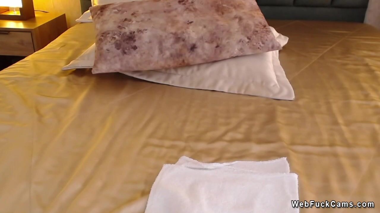 Beautiful brunette amateur Latina babe Clarise Randall with stunning body in underwear and socks strips off and masturbates with sex toy and brush on live webcam show
