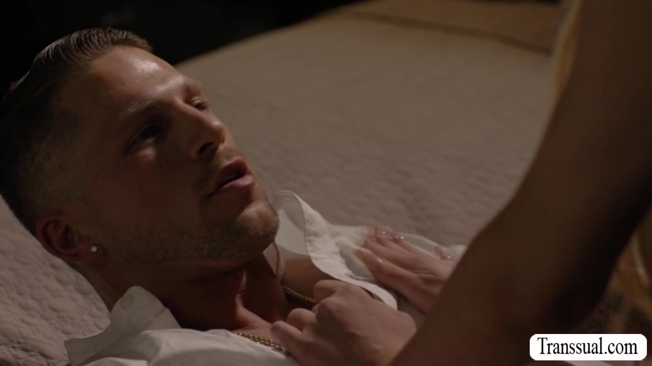 Trans blonde Gracie Jane and her new boyfriend are on the bed kissing each other.After that,she throats the big cock of her boyfriend and in return,the guy licks her ass first before he fucks it so deep and hard.