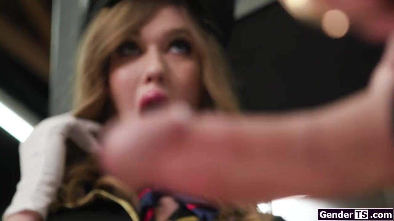 Busty trans flight attendant barebacked