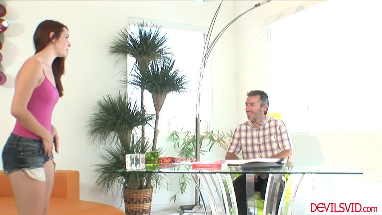 Redhead teen joins the ballerina club owned by her stepdads friend.The old man asks her to get naked n starts sucking her natural tits.She wants the spot so she gives in and shows him her blowjob skills.The guy rims her then performs anal penetration
