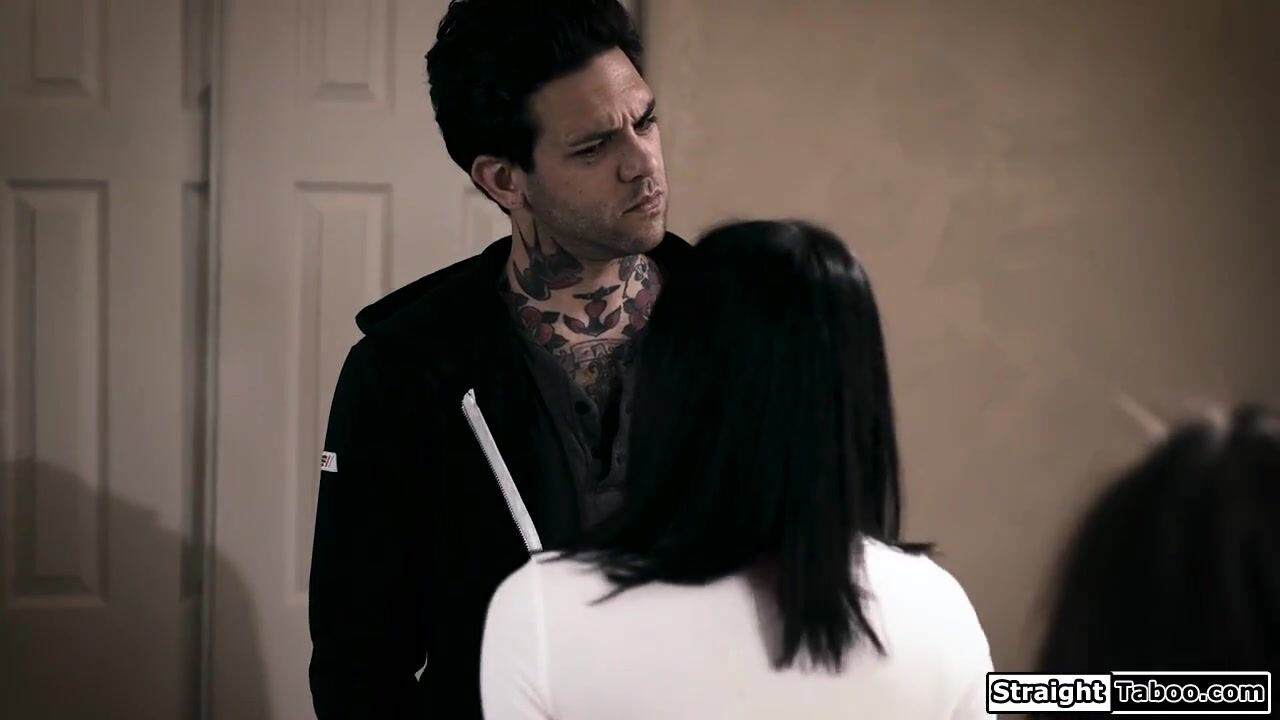 Tattooed milf and busty classmate seduce a guy to have a threesome.The girls kiss and deepthroat his big cock as hes blindfolded.The big tits brunette gets anal fucked as her bff masturbates her wet pussy.He bangs the babe as the cougar facesits her