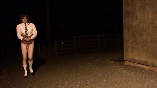My sissy kathy was instructed to put on his school uniform on and pose for me outdoors with his chastity showing, look at the panic on his face when he hears his neighbour.