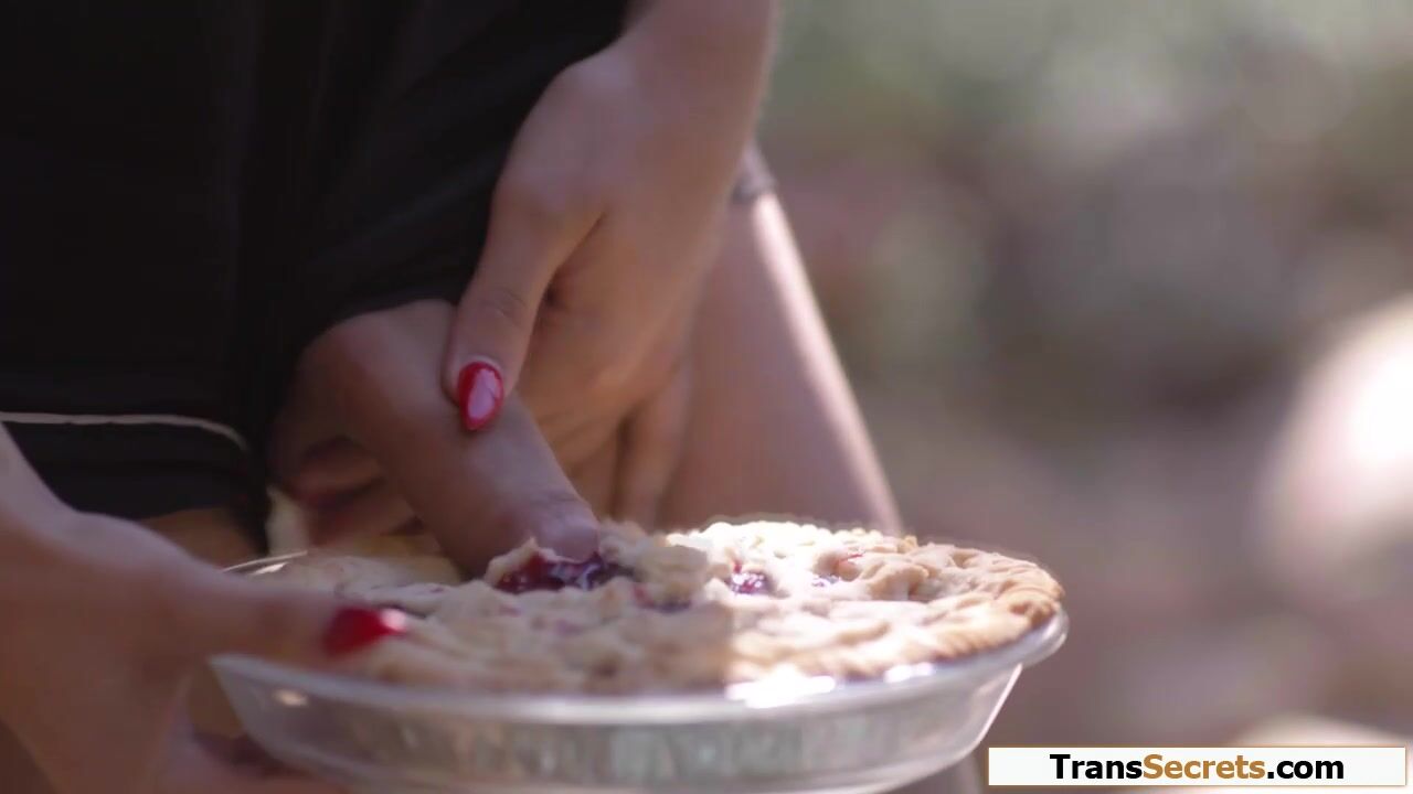 Shemale Tori Easton caught fucking a pie