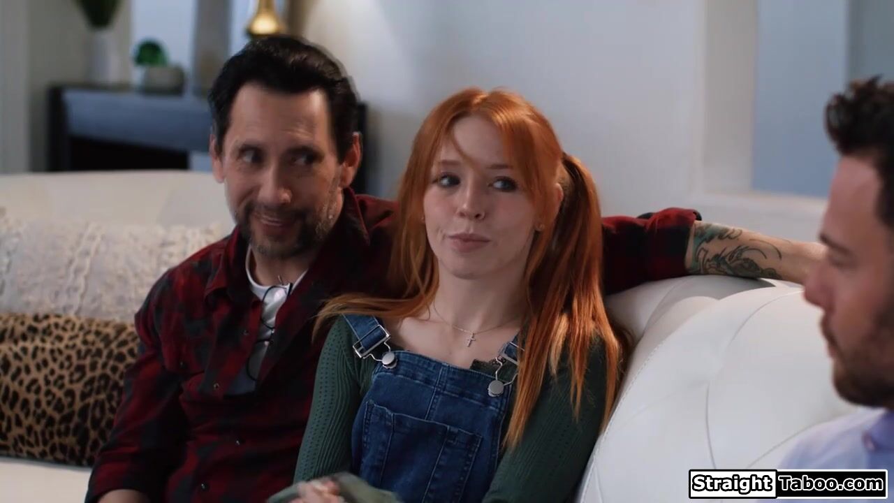 Social worker knows whats going on between stepdad and his stepdaughter.He wants a piece and the small tits redhead deepthroats his cock.The petite girl sucks off her stepdaddys dick while shes anal reamed.Then both guys double penetrate her