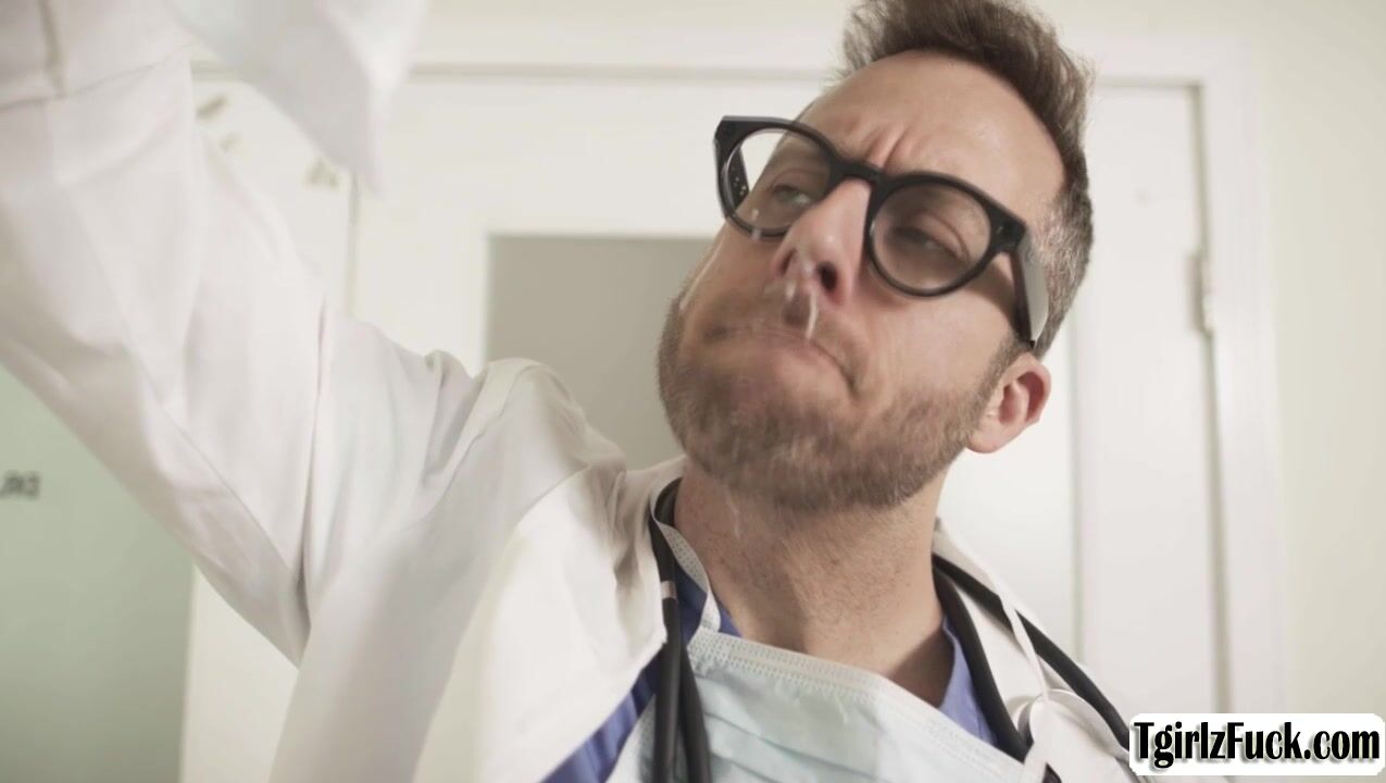 Trans cummer bareback anal fucks by her doctor