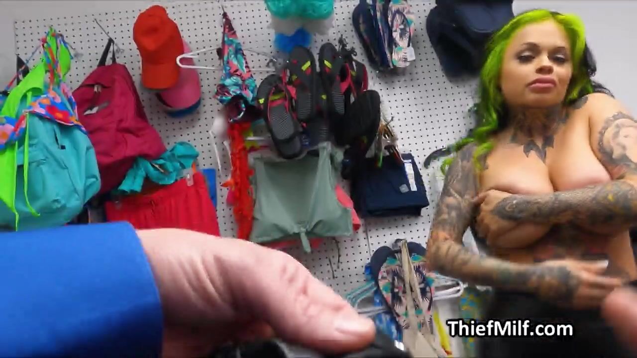 Meet Karen the slutty housewife who loves to steal stuff at stores. However today she got busted by Jack and her only way out is through his dick!