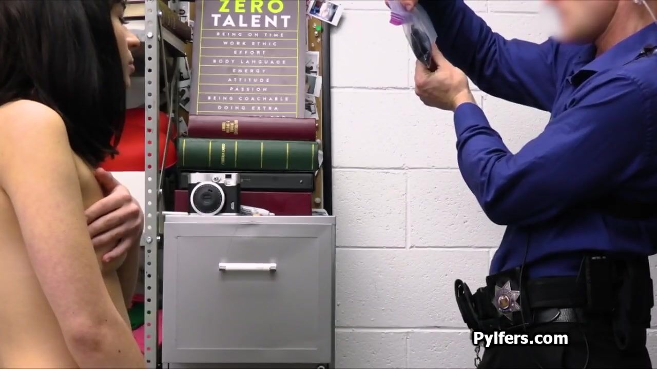 Petite hottie Aria is at the back office for questioning. Seems like she has stolen a bottle of perfume. And now its time to pay for it the hard way!