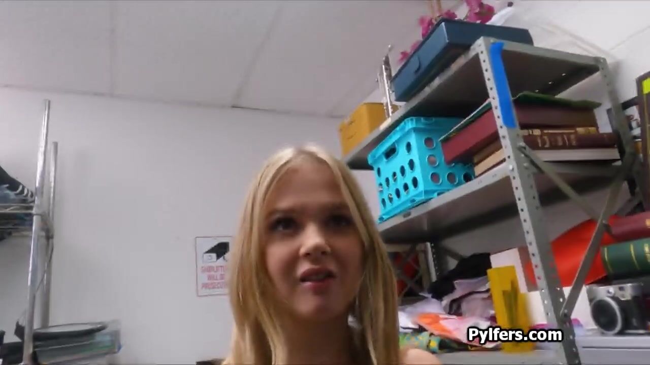 This loss prevention officer is fed up with his next suspect. Its an annoying blonde spinner, so she better uses her pretty mouth on his fat dick!