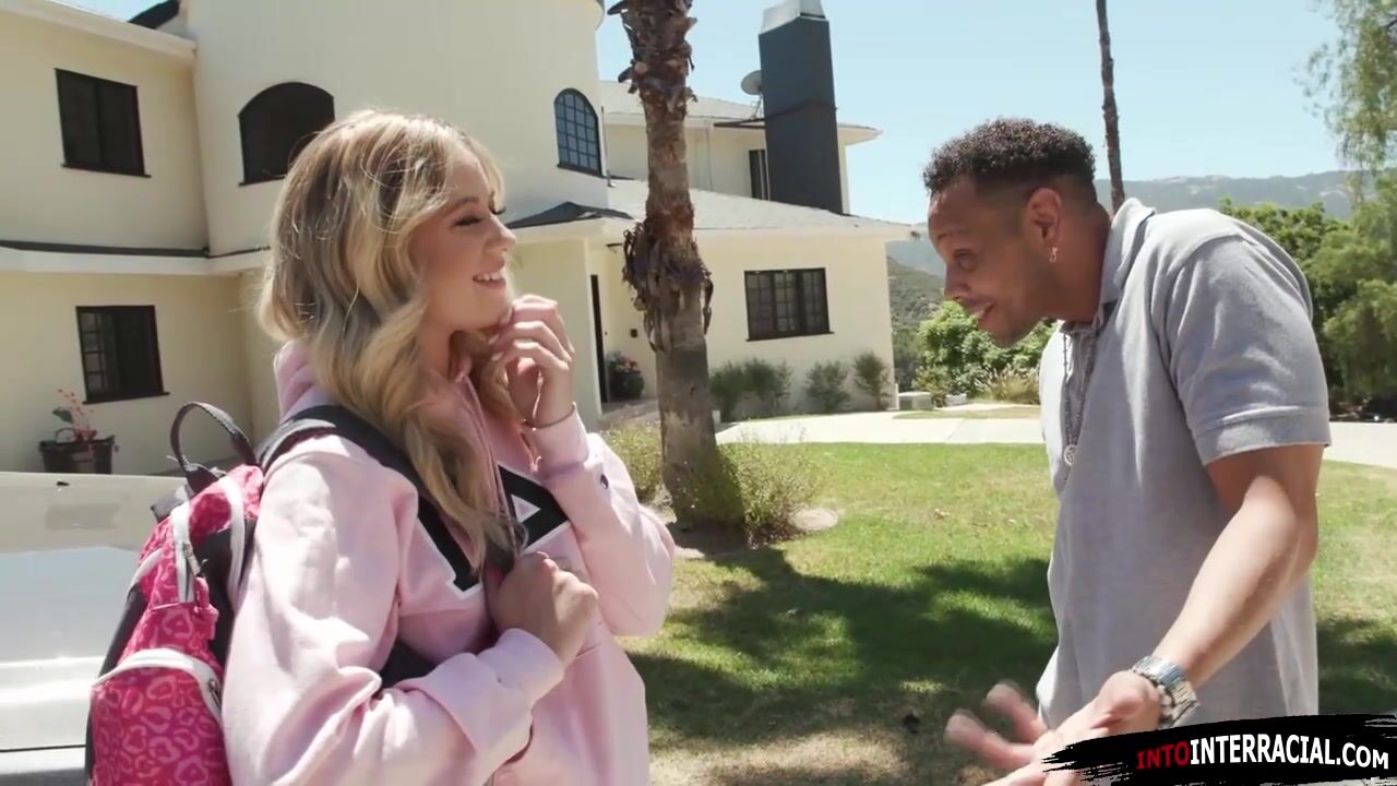 Sorority blonde River Lynn takes a black guy up to her dormroom and they make out.The babe deepthroats his bbc and get her yummy titties sucked while she handjobs his big black cock.He makes her orgasm by licking her pussy and fucks her with his bbc